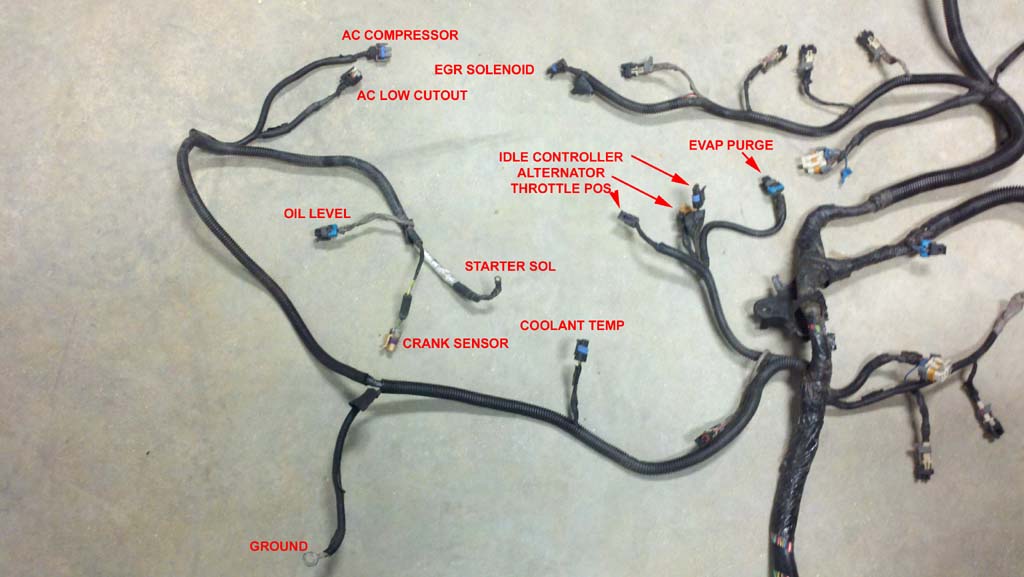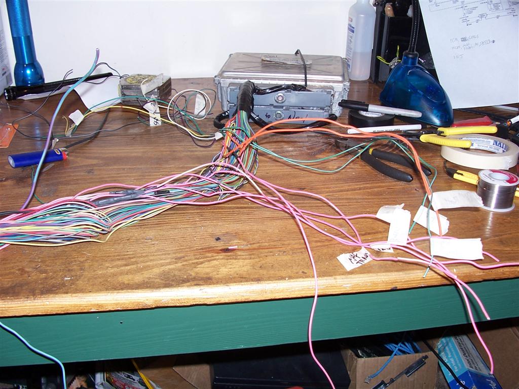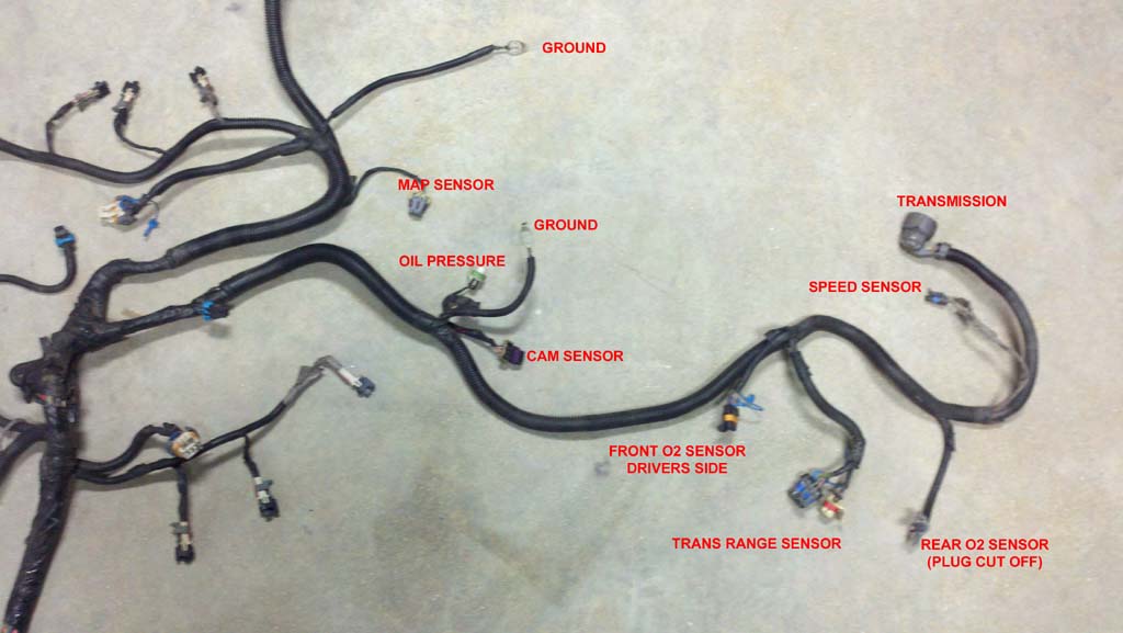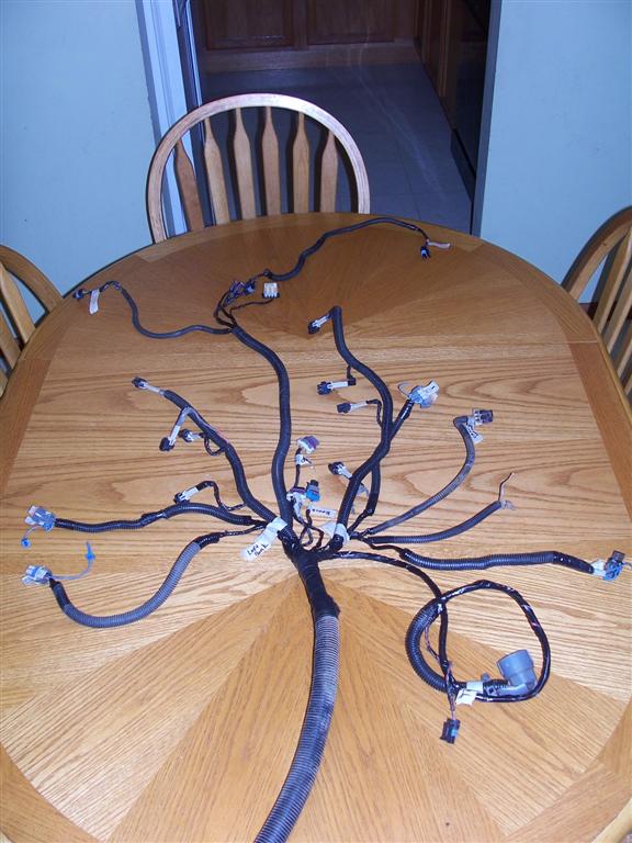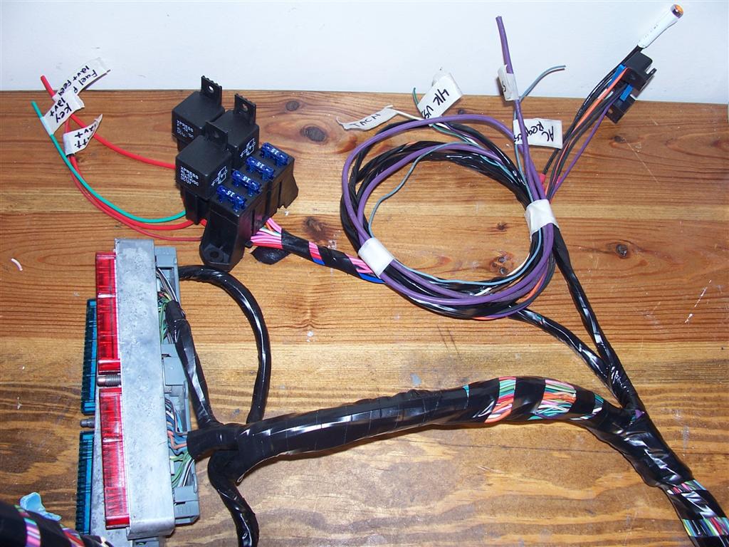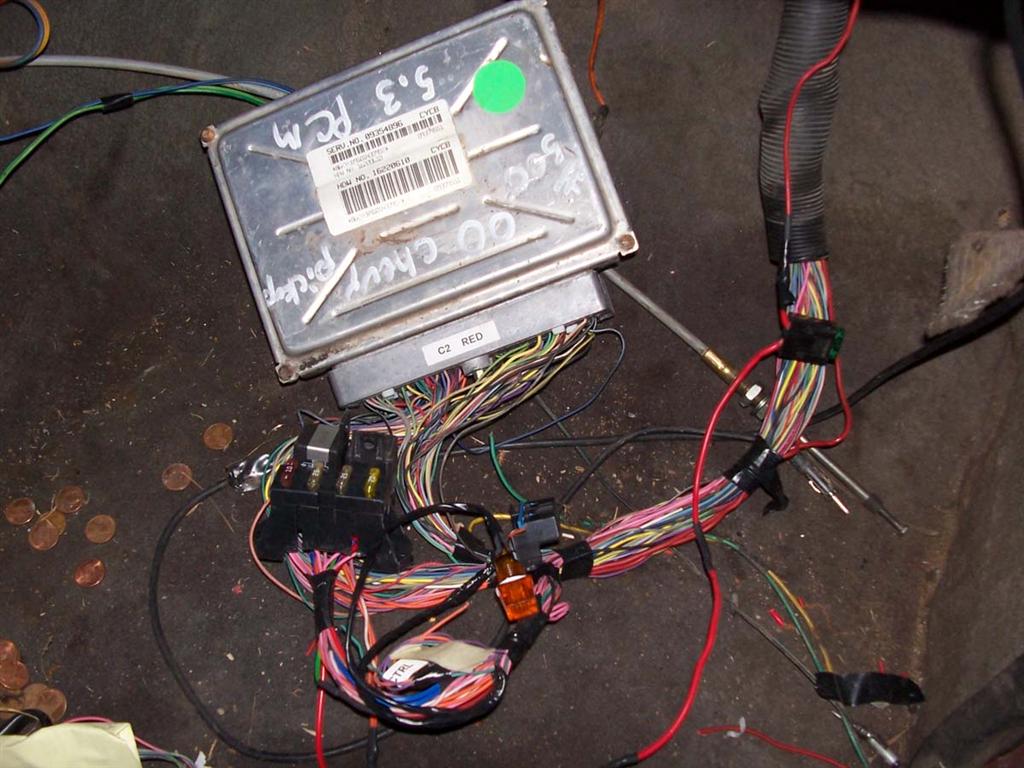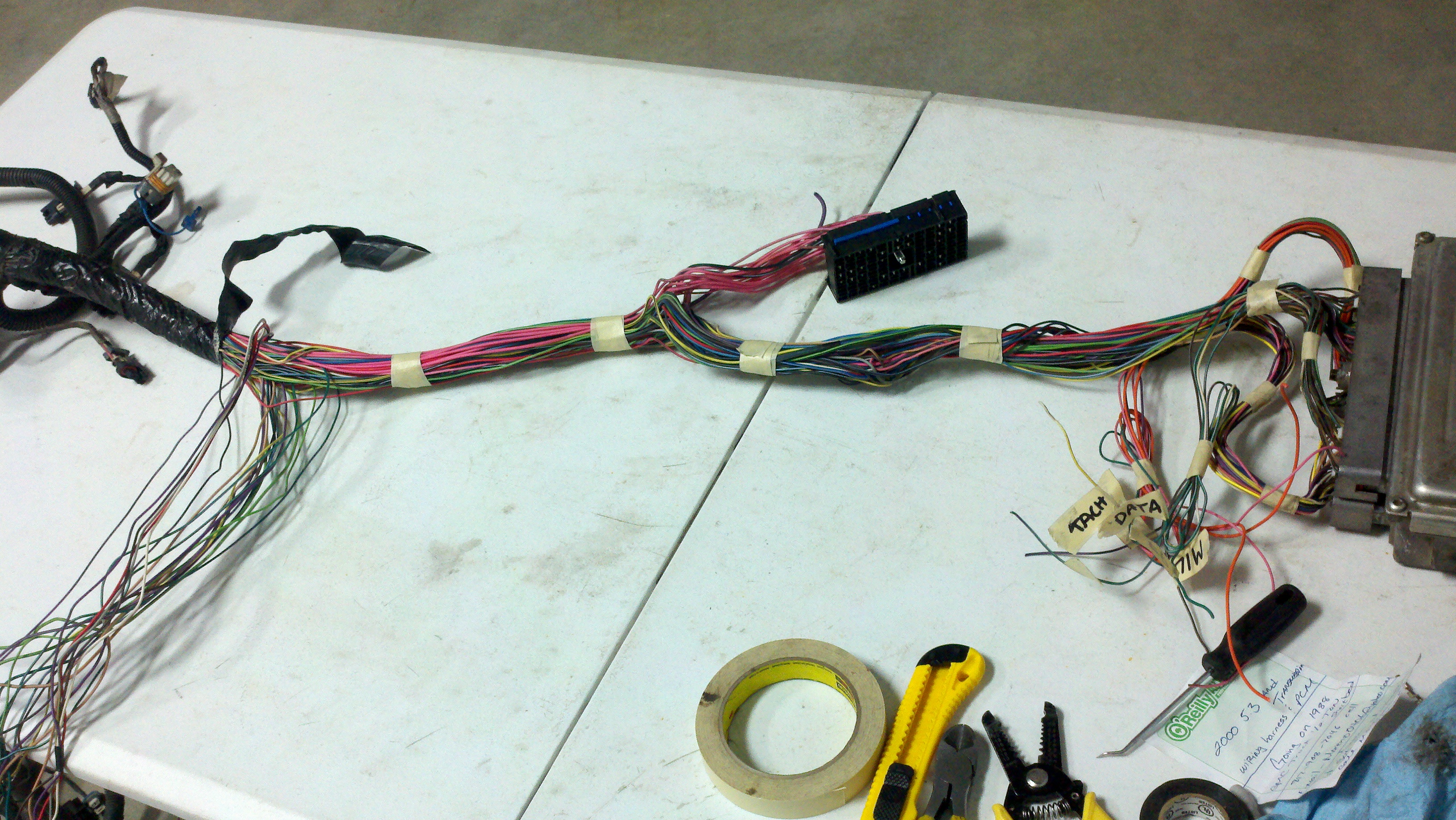 Custom 5.3 Vortec harness, lets you place PCM 5 feet away from back of intake manifold. Clean layout. I either shortened or lengthened almost every wire in the harness for this modification.