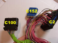 Click Year for Pinouts for Truck Harnesses. Some of the wires inside these links are made BOLD. This typically means this wire is needed or very useful in a stand alone harness setup. C2 information is in these links. Info is more complete for 1999, 2000. Later years should be similar, use circuit #'s to compair. 1999-2002 are VERY similar. Around 2001, the engines no longer had EGR, so that does away with 5 wires. The differences in the 99-02's don't matter a bit when making a harness stand alone. Very detailed info for what to remove, keep, etc is just a few lines down, I leave all this info so you can see changes year to year if you lik. 1999 2000 2001 2002 2003 2004 2005 2006 <-- these are right out of gm manuals. see below for detailed info. Helpful tips for harness modification. All the grounds needed will be in the engine harness. Should be a few of them. Rear of engine behind intake, should be two grounds. G103 & G104, behind accessory bracket is a ground. G102 The very first step I do when modifying these Vortec harnesses, is cut all the wires on C100, C152, and cut all BUT the PINK from C2 Underhood. Next step is remove the pins from the PCM connectors you don't need, and label those you DO need. See pinout charts listed here for 99-02 or 03-07 I have color coded the PINS TO REMOVE and the PINS TO EXTERNAL CONNECTION (KEEP). For 1999-2007!! here is a description of the wires from the PCM connectors that will connect to an external connection, outside the wiring harness. This is all you need for stand alone. (Includes Engine, Transmission) No Emissions. ---------------------------------------------------------------------------------------------- Blue Connector C1: Pin 33 - Purple - TCC Brake Switch - This wire tells the PCM when you hit the brakes. It needs 12v+ all the time, and the brake switch should "open" this circuit when you hit the brakes. Pin 42 - empty - Fan 1 Control - This will be empty on 99-2002 harnesses. A pin can be added for electric fan control. Programming will enable the fan control. PCM supplies a GROUND to turn on a relay. If you have two fans, keep reading, pin for fan 2 will be on the RED connector C2. You must wire your fans through a relay. Pin 58 - Dk Green - Serial Data - This is the Class 2 Serial Data wire that goes to the diagnostic port (OBD2) pin 2. Pin 19 and 75 - Pink - 12v+ KEY Power Source to PCM. Hot when Key is in the ON and CRANK positions. Pin 20 and 57 - Orange - 12v+ BATTERY Power Source to PCM. Hot at all times. ------------------------------------------------------------------------------------------------ Red Connector C2: or GREEN Pin 9 - Dk Green/White - Fuel Pump Relay Control - This wire the PCM supplies 12v+ to control a relay for fuel pump. PCM will turn on the fuel pump for 2 seconds at initial key on. When the engine cranks or starts, the fuel pump will then continue to run, untill the engine stops, or you shut off the key. Pin 10 - White - Engine Speed Signal - Tach signal. Stock programming of the PCM will output a 4 cylinder tach signal. When I program the PCM, I can change this signal to a 8 cylinder. This way you don't have to modify your tach. Pin 33 - Dk Green - Fan 2 Control - some 99-02 harnesses will have a pin here, this was used for the HVAC Recirculation Door control. The PCM would control the A/C recirculation to help cool the a/c system if it got too hot. In an engine swap, programming can be changed to let this control a second cooling fan. Again, PCM supplies a GROUND to run on a relay. You must wire your fans through a relay. Pin 46 - MIL Control - This is your ''check engine'' light control wire. PCM will supply a GROUND on this wire when the light should be ON. Pin 50 - Dk Green/White - VSS - This is a signal generated by the PCM, based on information it receives from the vehicle speed sensor located in the transmission. The PCM takes the sensor signal, and calculates the tire size, gear ratio programmed into it, and makes a 4000 pulse per mile signal. This is useful if you want to use a cruise control box. Some speedometers will use this as an input, others, like Autometer's, will hook directly to one wire of the speed sensor in the trans. After pins are removed, AND some labeled, I start working into the harness to remove un-needed wires that are now removed from the PCM connectors. Some will pull right out, as they went to C100, C152, or C2 Underhood. Pull all the loose wires that go deeper into the harness back past where the original C100, C152 were located. Tightly tape up the wire bundle at this location, as to not let there be too little or too much slack on the wires going to the PCM. Be sure to use masking tape to hold the basic shape of the engine harness. As you progress into the harness, you will find some ground wires that trace back to splice packs. Simply cut the wire up close to the splice pack. Keep 1 or 2 ground wires for when you add the relays and diagnostic port, you will need a ground. DO NOT LET THE HARNESS FALL APART OR GET TANGLED. As I get up to where wires branch out, I will follow that branch out, remove any wires going into it, then tape that branch back up. Only doing one branch at a time. You can start to cut and label the pink wires from C2 Underhood. See this link and look for the wires highlighted in BLUE. You may find it easier to use a digital volt-ohm meter set to continuity beep mode, in finding where each pink wire goes. This is pretty standard across all Vortec 4.8/5.3/6.0 harnesses: PCM - 2 pink; MAF - 1 pink; TRANS - 1; COILS - 2; INJECTORS - 8; O2 SENSORS 1 EACH;