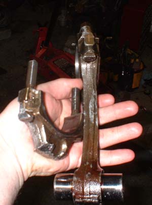 One rod bent, another broken off. The piston that was on the bent rod (#6 bore) was the one that seemed to explode. I found the other piston from the broken rod still in the #5 bore with the other end of the rod attached, and a 2 inch section of rod missing from the engine. Out the oil pan I guess.