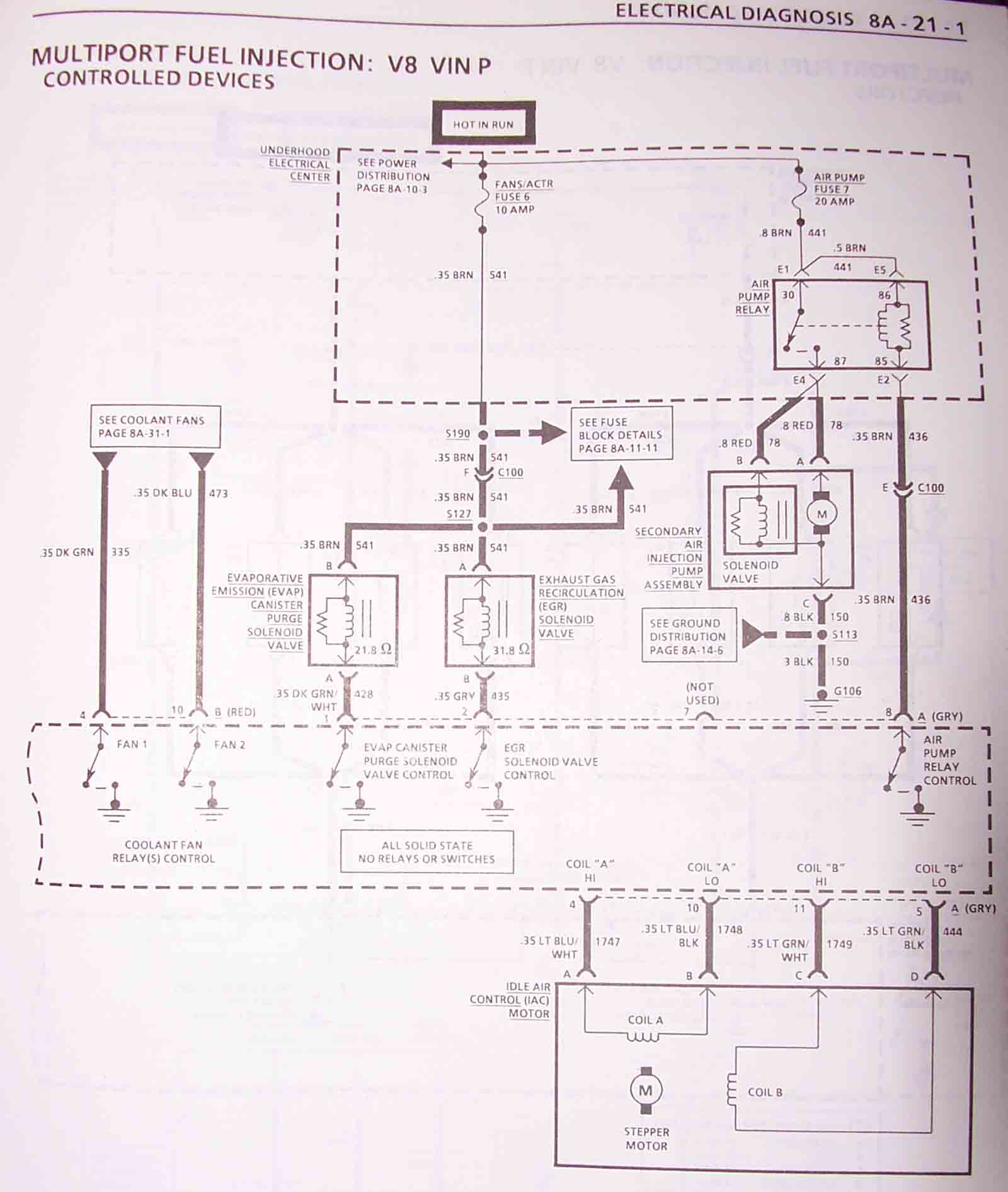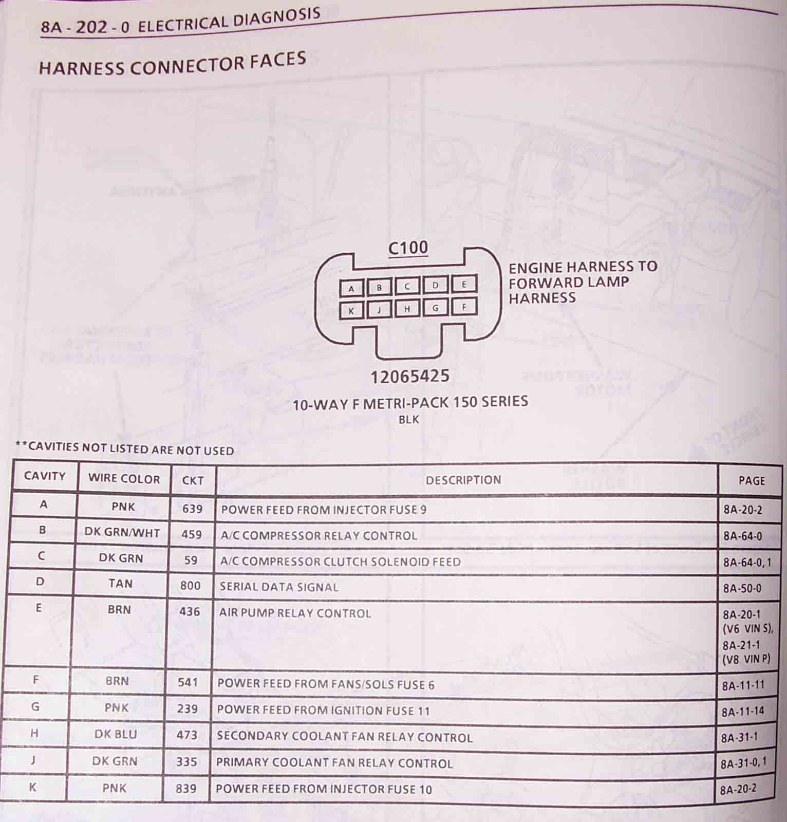 C100 pin F brn - I believe this wire feeds your egr, evap solenoids with fused