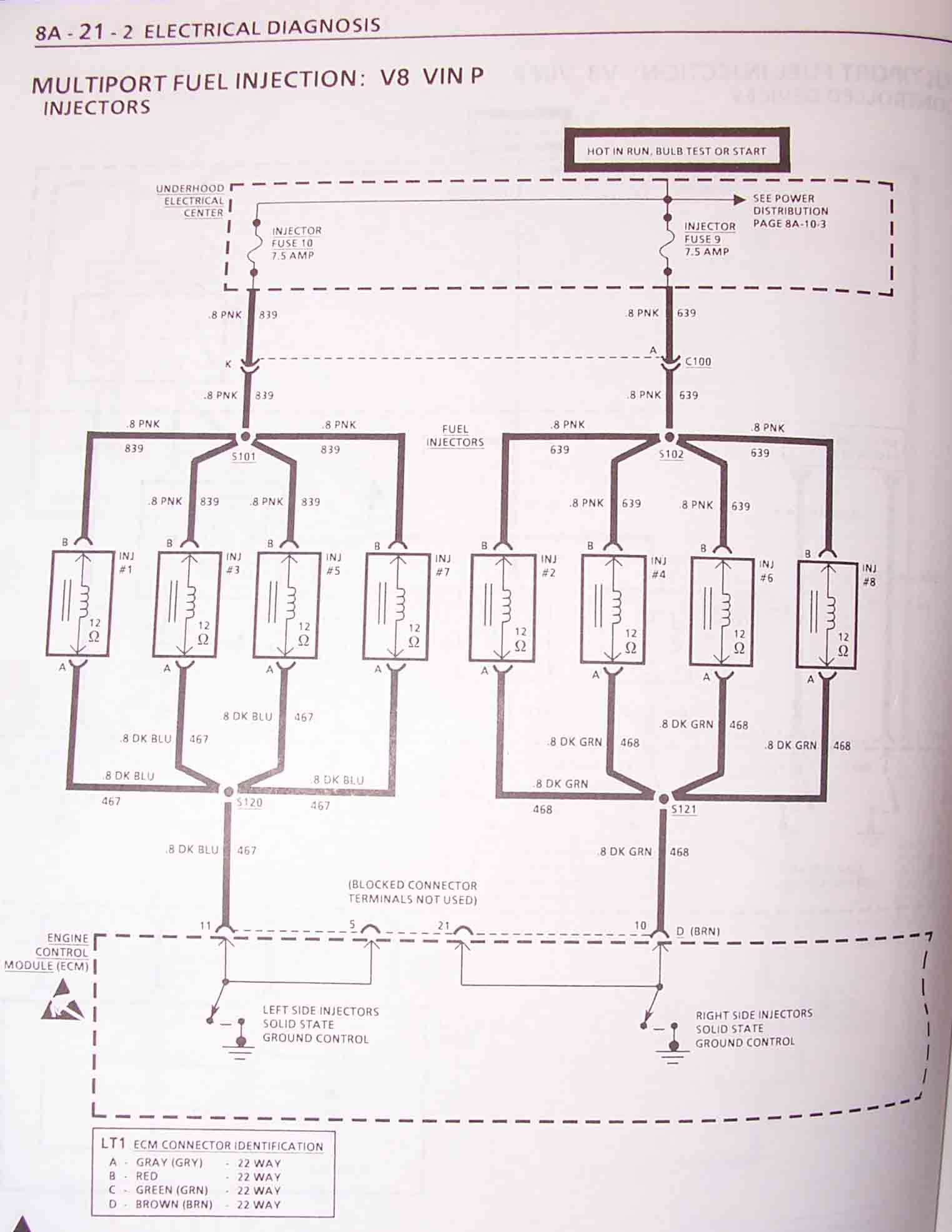 C100 pin A, PINK - key 12v+ feed to Injectors 2,4,6,8 7.5amp