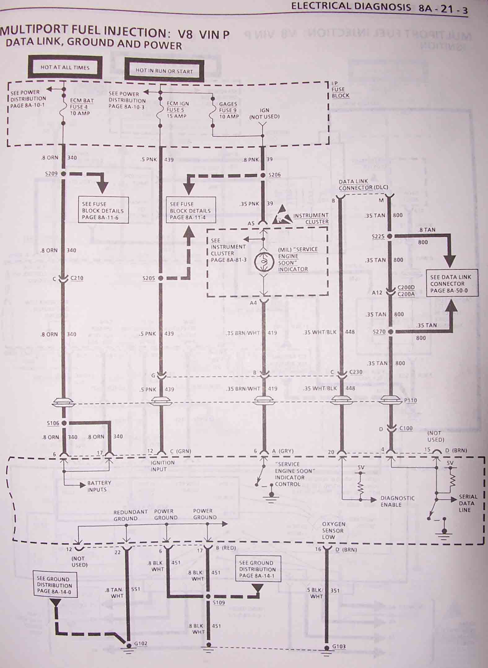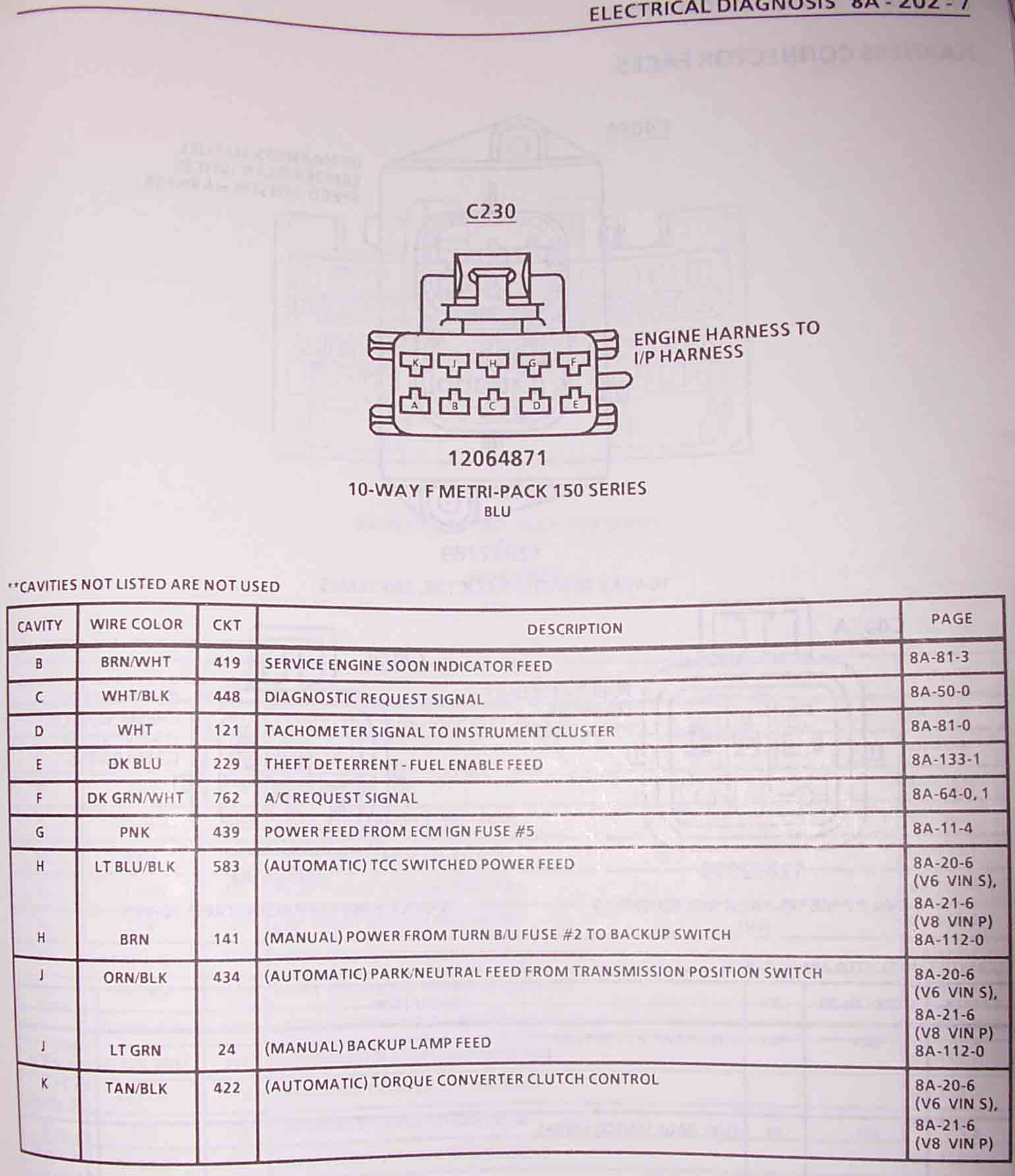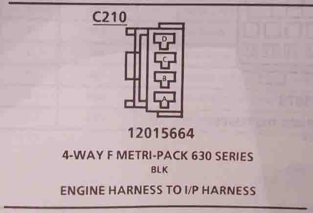 1. C210 pin C, ORANGE - battery feed to PCM, 10 amp fused